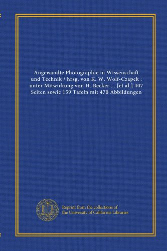 You are about to access our book library "Angewandte Photographie in Wissenschaft und Technik / hrsg. von K. W. Wolf-Czapek ; unter Mitwirkung von H. Becker ... [et al.] 407 Seiten sowie 159 Tafeln mit 470 Abbildungen (German Edition) full version"