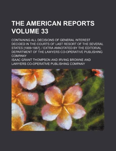 You are about to access our book library "The American reports Volume 33 ; containing all decisions of general interest decided in the courts of last resort of the several states [1869-1887]. ... the Lawyers co-operative publishing company full version"