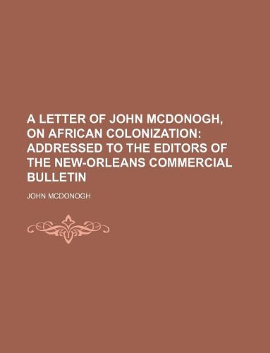 A letter of John McDonogh, on African colonization full version