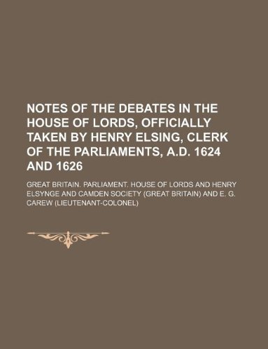 Notes of the debates in the House of Lords, officially taken by Henry Elsing, clerk of the Parliaments, A.D. 1624 and 1626 full version