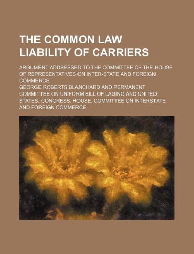 The common law liability of carriers; argument addressed to the Committee of the House of Representatives on Inter-state and Foreign Commerce full version