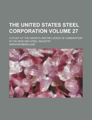 The United States Steel Corporation Volume 27; a study of the growth and influence of combination in the iron and steel industry full version