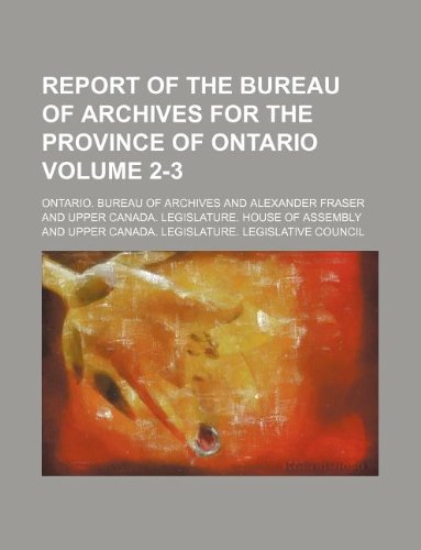 Report of the Bureau of Archives for the Province of Ontario Volume 2-3 full version