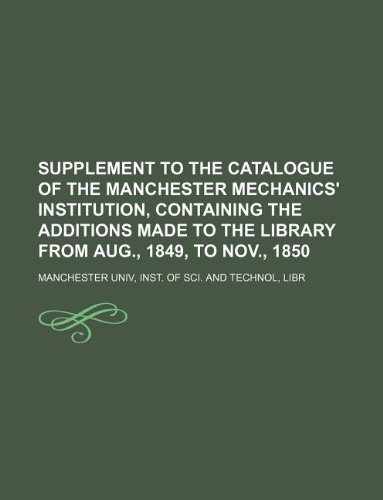 Supplement to the Catalogue of the Manchester mechanics' institution, containing the additions made to the library from Aug., 1849, to Nov., 1850 full version