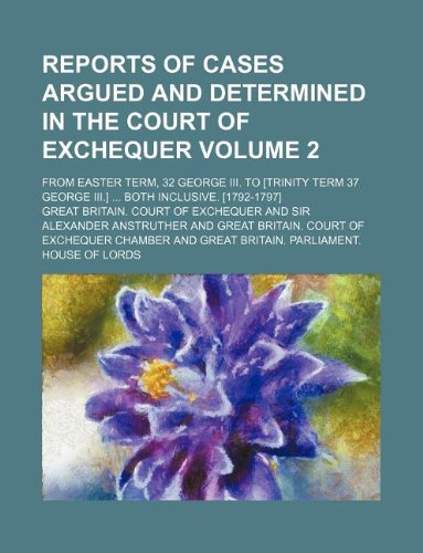 Reports of cases argued and determined in the Court of Exchequer Volume 2 ; from Easter term, 32 George III. to [Trinity term 37 George III.] ... both inclusive. [1792-1797] full version
