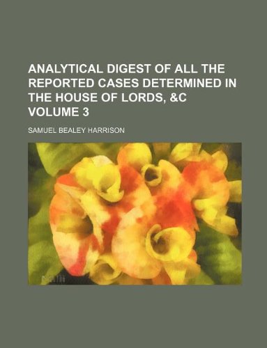 Analytical Digest of all the Reported Cases determined in the House of Lords, &c Volume 3 full version