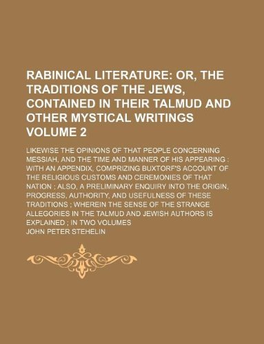 Rabinical Literature Volume 2 ; Likewise the Opinions of that People concerning Messiah, and the Time and Manner of His Appearing: With An Appendix, ... of that Nation ; Also, A Preliminary full version