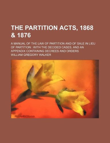 The Partition acts, 1868 & 1876; a manual of the law of partition and of sale in lieu of partition: with the decided cases, and an appendix containing decrees and orders full version