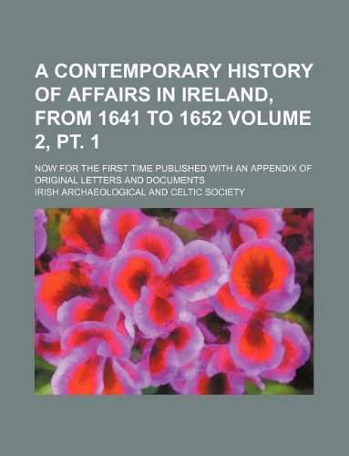 A Contemporary History of Affairs in Ireland, from 1641 to 1652 Volume 2, PT. 1; Now for the First Time Published with an Appendix of Original Letters and Documents full version