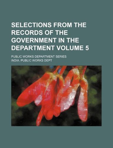 Selections from the Records of the Government in the Department Volume 5; Public Works Department Series full version