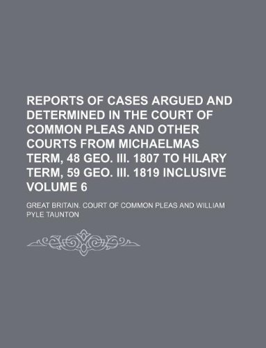 Reports of Cases Argued and Determined in the Court of Common Pleas and Other Courts from Michaelmas Term, 48 Geo. III. 1807 to Hilary Term, 59 Geo. III. 1819 Inclusive Volume 6 full version
