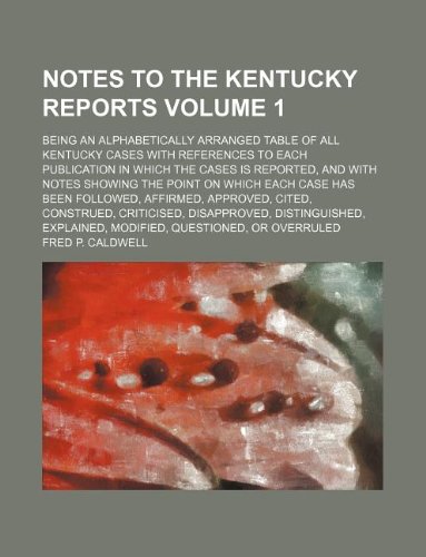 You are about to access our book library "Notes to the Kentucky reports Volume 1; being an alphabetically arranged table of all Kentucky cases with references to each publication in which the ... each case has been followed, affirmed, appro full version"