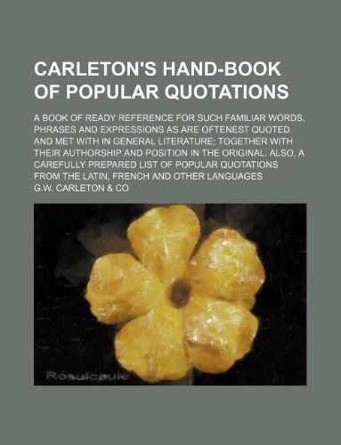 You are about to access our book library "Carleton's hand-book of popular quotations; A book of ready reference for such familiar words, phrases and expressions as are oftenest quoted and met ... position in the original. Also, a carefull full version"