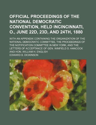 You are about to access our book library "Official proceedings of the National Democratic convention, Held inCincinnati, O., June 22d, 23d, and 24th, 1880; With an appendix containing the ... of the notification committee in New York, full version"