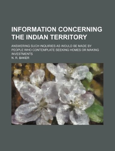 Information Concerning the Indian Territory; Answering Such Inquiries as Would Be Made by People Who Contemplate Seeking Homes or Making Investments full version