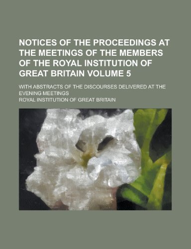 Notices of the Proceedings at the Meetings of the Members of the Royal Institution of Great Britain; With Abstracts of the Discourses Delivered at the Evening Meetings Volume 5 full version