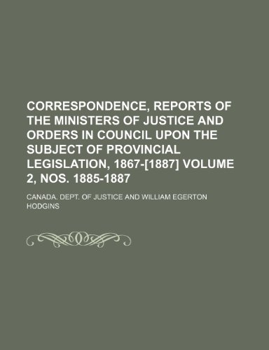 Correspondence, reports of the ministers of justice and orders in Council upon the subject of provincial legislation, 1867-[1887] Volume 2, nos. 1885-1887 full version