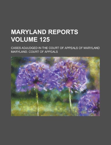 Maryland Reports; Cases Adjudged in the Court of Appeals of Maryland Volume 125 full version