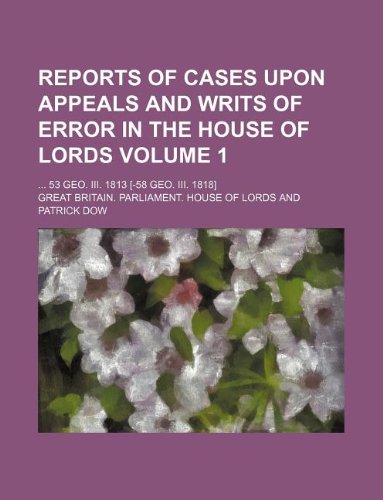 Reports of cases upon appeals and writs of error in the House of Lords Volume 1; ... 53 Geo. III. 1813 [-58 Geo. III. 1818] full version