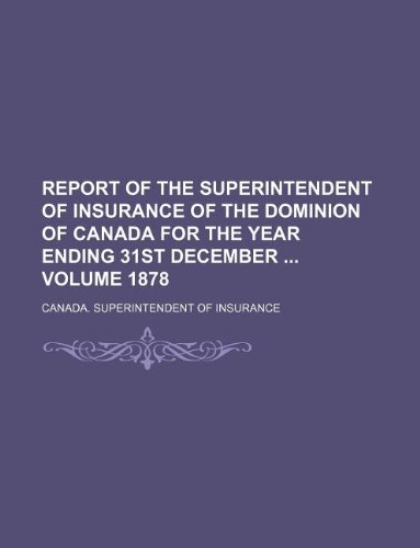 Report of the Superintendent of Insurance of the Dominion of Canada for the year ending 31st December Volume 1878 full version