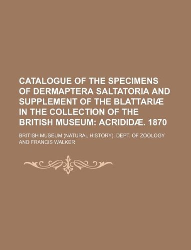 Catalogue of the Specimens of Dermaptera Saltatoria and Supplement of the Blattariae in the Collection of the British Museum full version