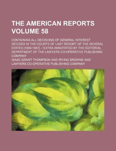 You are about to access our book library "The American reports Volume 58 ; containing all decisions of general interest decided in the courts of last resort of the several states [1869-1887]. ... the Lawyers co-operative publishing company full version"