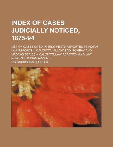 Index of Cases Judicially Noticed, 1875-94; List of Cases Cited in Judgments Reported in Indian Law Reports -- Calcutta, Allahabad, Bombay and Madras full version