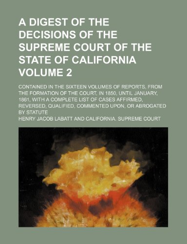 You are about to access our book library "A digest of the decisions of the Supreme Court of the State of California; contained in the sixteen volumes of Reports, from the formation of the ... a complete list of cases affirmed, Volume 2 full version"