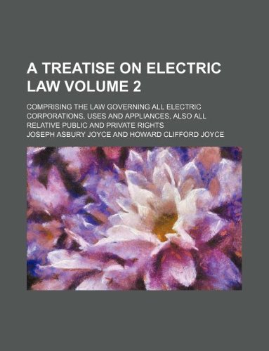 A Treatise on Electric Law Volume 2; Comprising the Law Governing All Electric Corporations, Uses and Appliances, Also All Relative Public and Private Rights full version