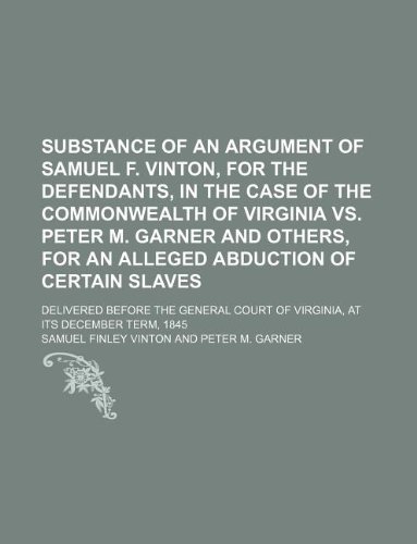 You are about to access our book library "Substance of an argument of Samuel F. Vinton, for the defendants, in the case of the Commonwealth of Virginia vs. Peter M. Garner and others, for an ... Court of Virginia, at its December term, full version"