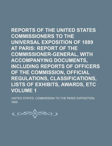 Reports of the United States Commissioners to the Universal Exposition of 1889 at Paris Volume 1 full version