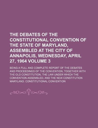 You are about to access our book library "The debates of the constitutional convention of the state of Maryland, assembled at the city of Annapolis, Wednesday, April 27, 1964 Volume 3 ; being ... the convention, together with the old consti full version"