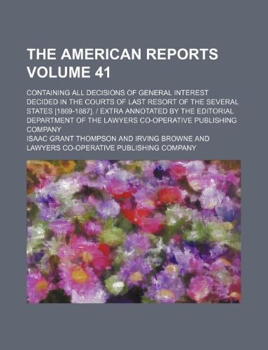 You are about to access our book library "The American reports Volume 41 ; containing all decisions of general interest decided in the courts of last resort of the several states [1869-1887]. ... the Lawyers co-operative publishing company full version"