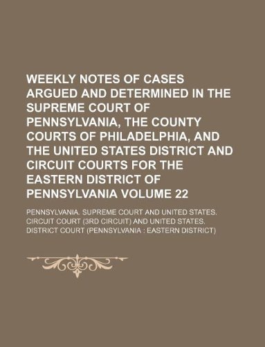 You are about to access our book library "Weekly notes of cases argued and determined in the Supreme Court of Pennsylvania, the County courts of Philadelphia, and the United States District ... Eastern district of Pennsylvania Volume 22 full version"