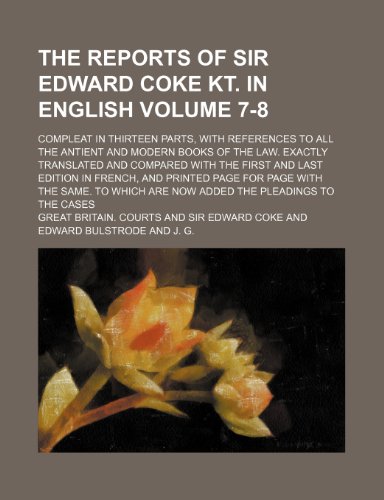 You are about to access our book library "The reports of Sir Edward Coke Kt. In English; compleat in thirteen parts, with references to all the antient and modern books of the law. Exactly ... edition in French, and printed Volume 7-8 full version"