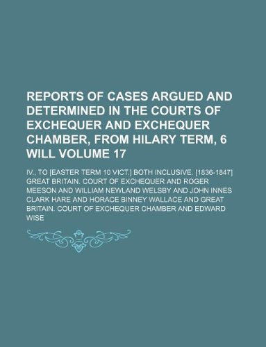Reports of cases argued and determined in the Courts of Exchequer and Exchequer Chamber, from Hilary term, 6 Will Volume 17; IV., to [Easter term 10 Vict.] both inclusive. [1836-1847] full version