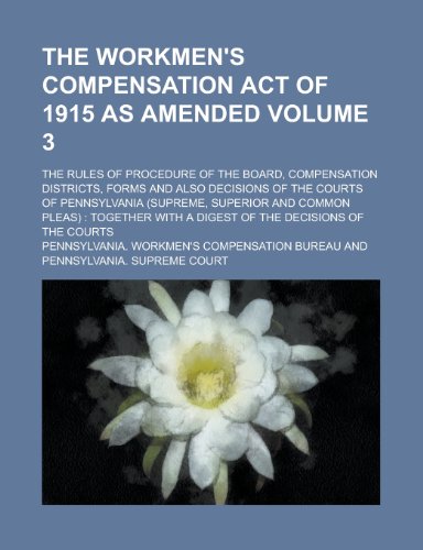 You are about to access our book library "The Workmen's Compensation Act of 1915 as Amended; The Rules of Procedure of the Board, Compensation Districts, Forms and Also Decisions of the Courts ... Pleas): Together with a Digest Volume 3 full version"