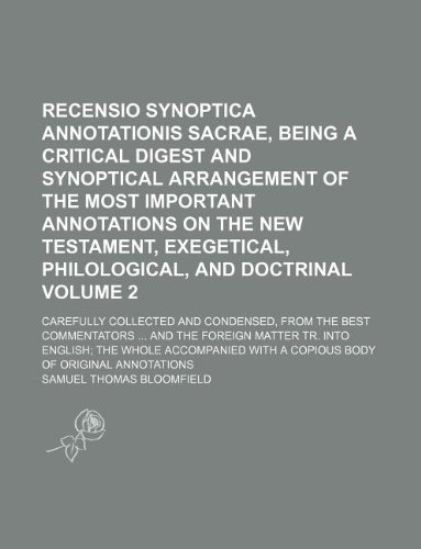 Recensio synoptica annotationis sacrae, being a critical digest and synoptical arrangement of the most important annotations on the New Testament, ... and condensed, from the best commentat full version