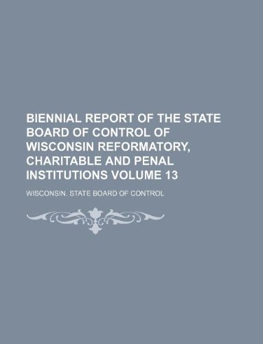 Biennial Report of the State Board of Control of Wisconsin Reformatory, Charitable and Penal Institutions Volume 13 full version