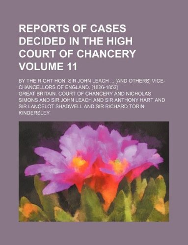 Reports of cases decided in the High Court of Chancery Volume 11 ; by the Right Hon. Sir John Leach ... [and others] vice-chancellors of England. [1826-1852] full version