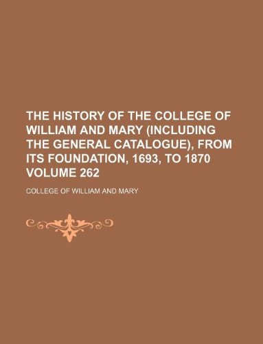 The history of the College of William and Mary (including the General Catalogue), from its foundation, 1693, to 1870 Volume 262 full version