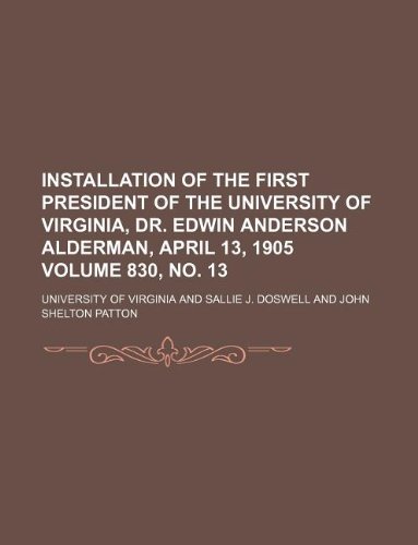 Installation of the first president of the University of Virginia, Dr. Edwin Anderson Alderman, April 13, 1905 Volume 830, no. 13 full version