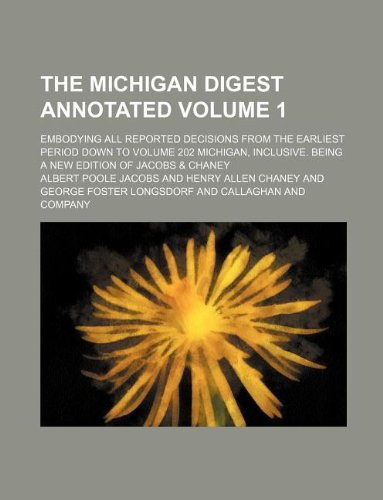 The Michigan Digest Annotated Volume 1; Embodying All Reported Decisions from the Earliest Period Down to Volume 202 Michigan, Inclusive. Being a New Edition of Jacobs & Chaney full version