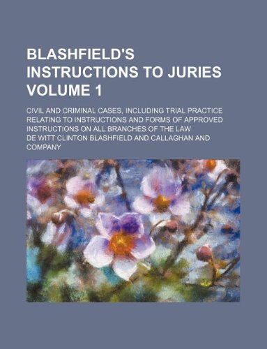 Blashfield's Instructions to Juries Volume 1; Civil and Criminal Cases, Including Trial Practice Relating to Instructions and Forms of Approved Instructions on All Branches of the Law full version