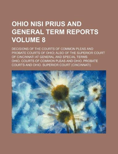 Ohio Nisi Prius and General Term Reports Volume 8; Decisions of the Courts of Common Pleas and Probate Courts of Ohio Also of the Superior Court of Cincinnati at General and Special Terms full version