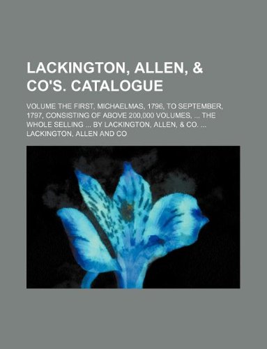 Lackington, Allen, & Co's. catalogue; volume the first, Michaelmas, 1796, to September, 1797, consisting of above 200,000 volumes, the whole selling by Lackington, Allen, & Co. full version