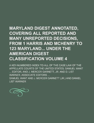 You are about to access our book library "Maryland digest annotated, covering all reported and many unreported decisions, from 1 Harris and McHenry to 123 Maryland under the American digest ... law of the appellate courts of the United full version"