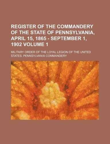 Register of the Commandery of the State of Pennsylvania, April 15, 1865 - September 1, 1902 Volume 1 full version