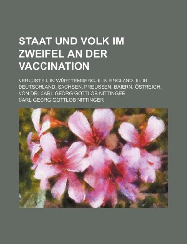 Staat Und Volk Im Zweifel an Der Vaccination; Verluste I. in Wurttemberg. II. in England. III. in Deutschland Sachsen, Preussen, Baiern, Ostreich. Von Dr. Carl Georg Gottlob Nittinger full version