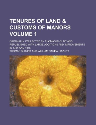 Tenures of land & customs of manors Volume 1 ; originally collected by Thomas Blount and republished with large additions and improvements in 1784 and 1815 full version